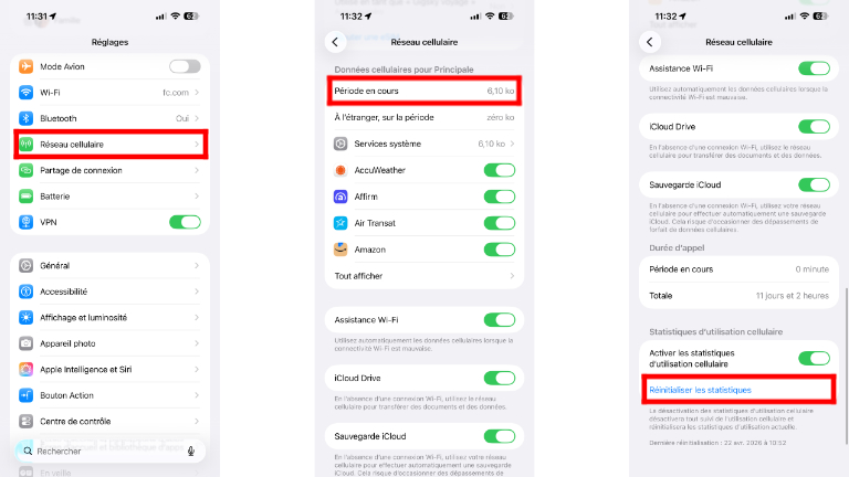 Vous vous demandez combien de données cellulaires vous utilisez chaque mois ou quelles applications en consomment le plus ? Sur iPhone comme sur Android, il est possible de voir facilement son utilisation directement dans les réglages du téléphone. Un bon réflexe à adopter pour mieux comprendre sa consommation, que ce soit pour réduire certains usages au besoin ou éviter des surprises, notamment en situation d’itinérance.