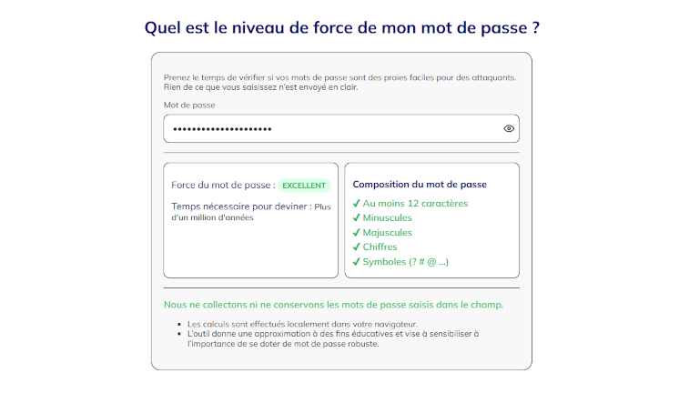 J'ai justement un outil de vérification de mot de passe qui permet de connaître la force d'un de nos mots de passe.