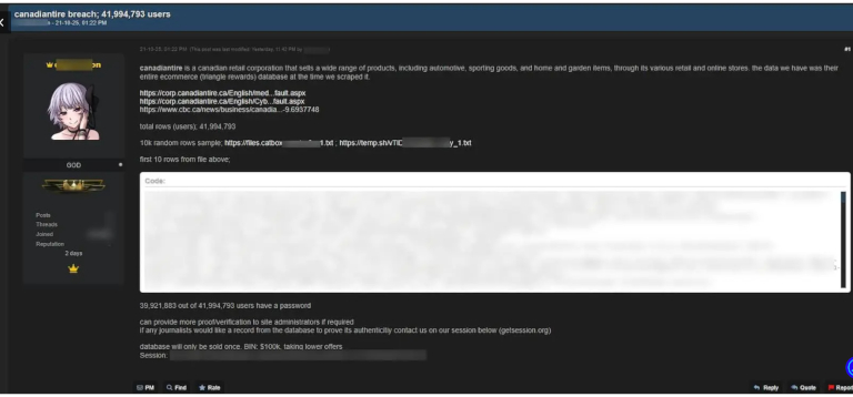 Ce voleur prétend même avoir en sa possession l’ensemble du système de commerce en ligne et du programme de fidélité Récompense Triangle, même si Canadian Tire a affirmé que les données Triangle n’avaient pas été touchées.