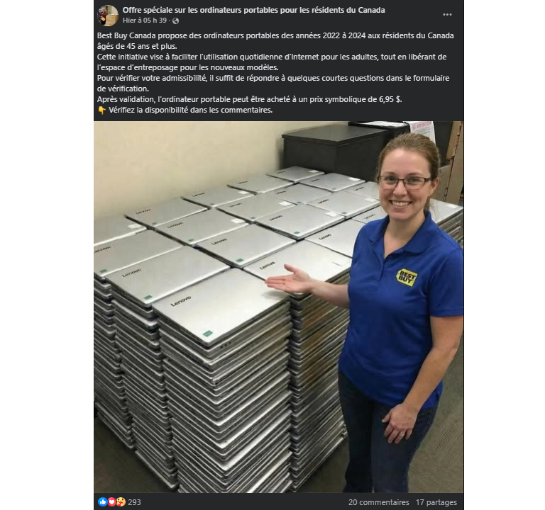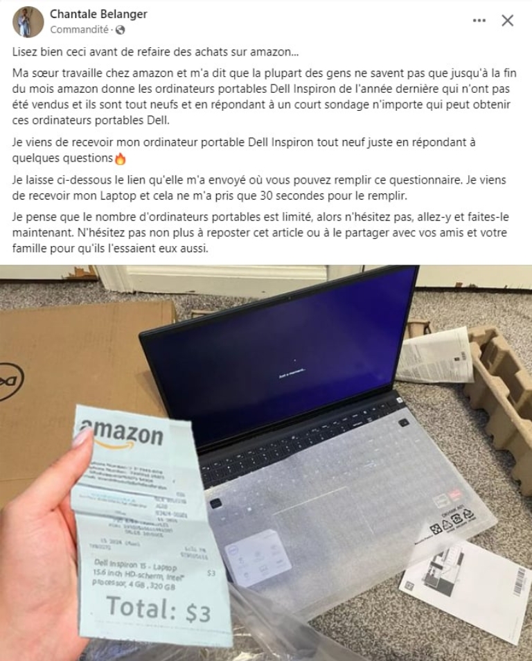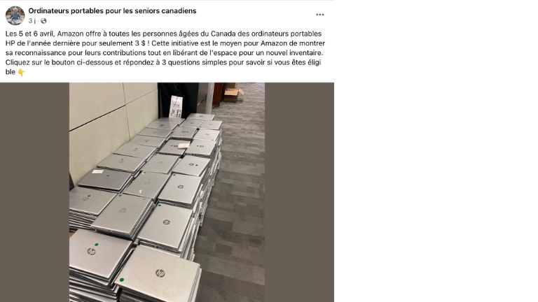 On voit passer sur Facebook et les réseaux sociaux des publications mentionnant que l'on peut avoir un iPad, iPhone, un ordinateur ou même un aspirateur à prix ridicule. On y mentionne des compagnies comme Amazon ou Walmart qui auraient supposément des stocks excédentaires à vendre pour 3$ ou carrément à faire tirer. Qu'est-ce qui se cache derrière ces publications?