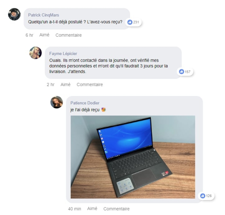 Il y a même les deux mêmes madames qui commentent toutes les publications en disant avoir reçu leur iPad!