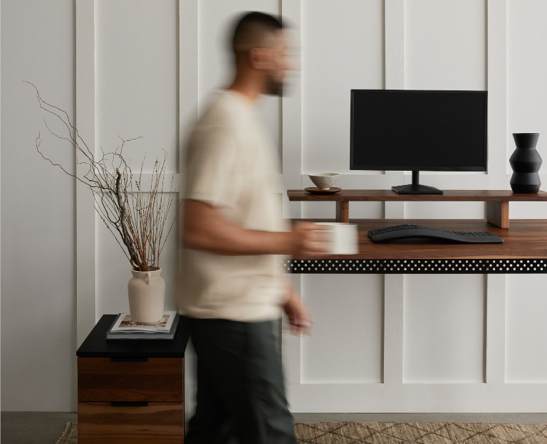 Que vous soyez en télétravail ou que vous ayez adopté le modèle hybride, on le sait: travailler sur la table de cuisine ou sur un bureau de fortune n'est pas idéal et peut engendrer des problèmes de posture, de dos, de cou ou d'épaules.
