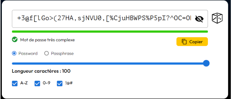 Fini les mots de passe simples! Keeper intègre un générateur de mots de passe sécurisés qui crée pour vous des suites de caractères aléatoires et complexes. Ces mots de passe peuvent même atteindre 100 caractères de long.
