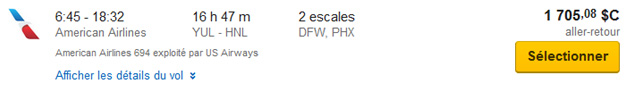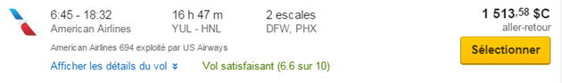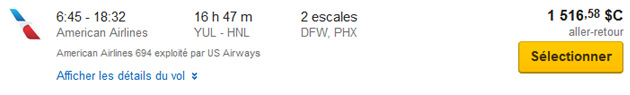 Nous avons fait un test sur le site Expedia pour un vol aller-retour Montréal-Honolulu. Lors de notre première recherche, nous avons utilisé le navigateur Chrome et le billet le moins cher était au prix de 1513,58$.