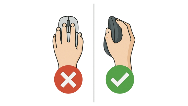 La souris et le clavier doivent être au même niveau et le plus près possible l'un de l'autre. Si vous avez un panneau coulissant sous votre table de travail, déposez les deux éléments sur la tablette. Sinon, ils devront être installés directement sur la surface de travail. Assurez-vous que votre main soit toujours alignée avec votre avant-bras afin d'éviter les torsions.
