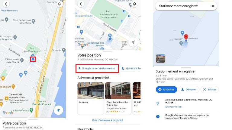 À noter que Google sauvegarde notre place de parking sur notre appareil pour une durée de 8h, après, elle s'efface.