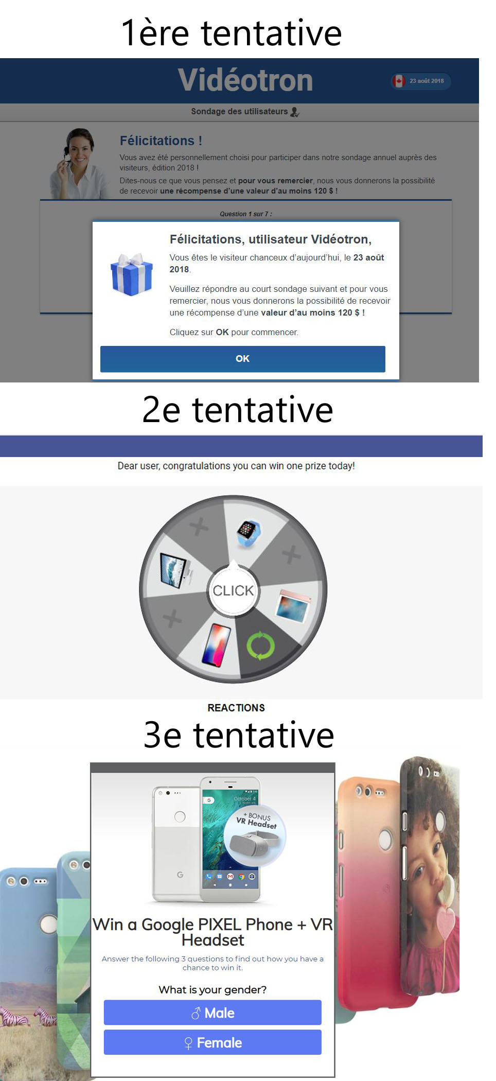 Sachant que l’appât du gain est très fort chez certains, ces personnes peuvent aisément créer de faux concours menant à des liens malveillants et ainsi récolter de précieuses informations sur nous et nos appareils.