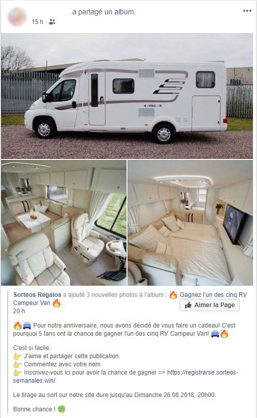 Un nouveau concours devient viral sur Facebook? On fait miroiter un nouveau VR, une maison mobile ou un campeur de luxe? Méfiez-vous, alors qu’il y a de fortes chances que ce soit une arnaque et une fraude en ligne.